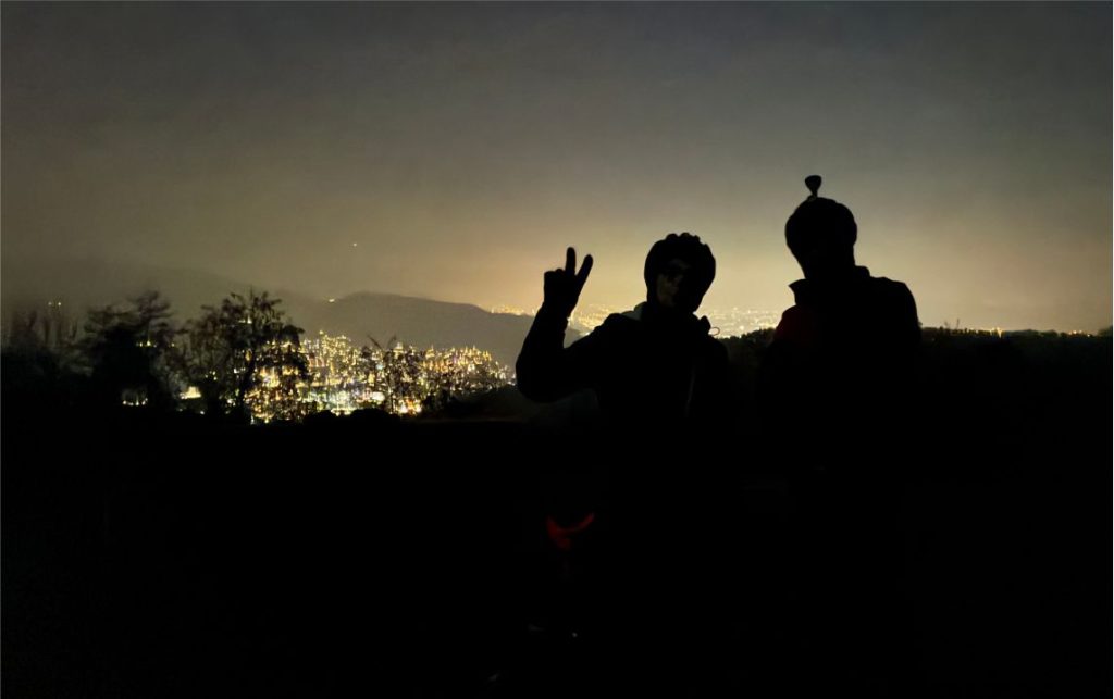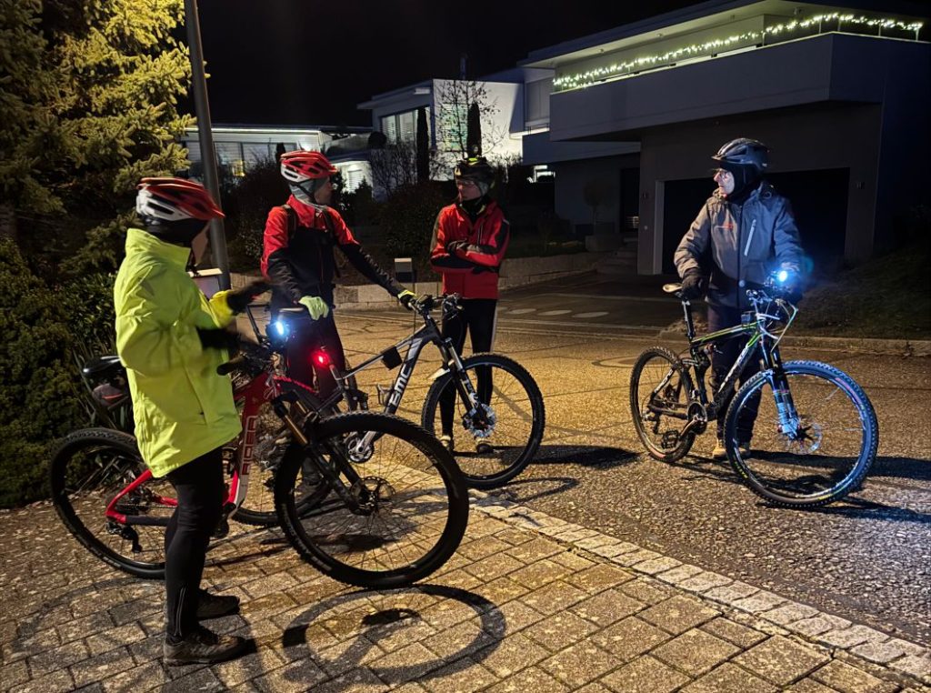 Jedesmal eine einmalige Stimmung auf dem „Vulkan“…. Nur gerade vier Biker konnten diesmal die Weihnachtsbiketour in Angriff nehmen… schade. Schön war aber die nächtliche Biketour trotzdem, denn der nächtliche Sternenhimmel und der Halbmond zwischen den Bäumen waren einfach nur schön. So war sogar die Kälte gar nicht mehr so schlimm…